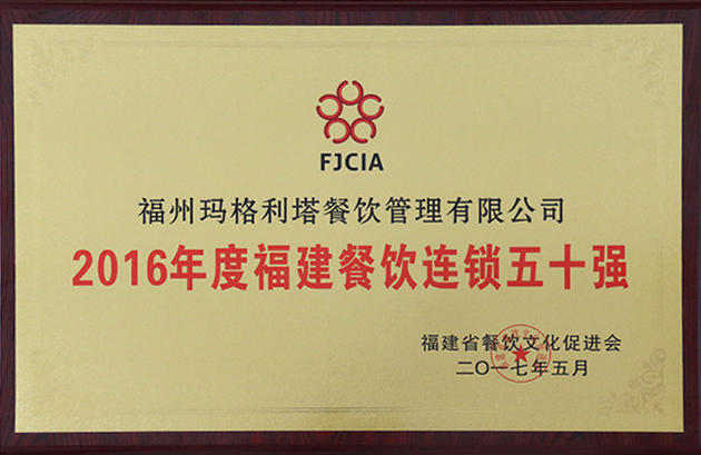 百強企業”、“2016年福建餐飲50強企業”、 “2016年度福建餐