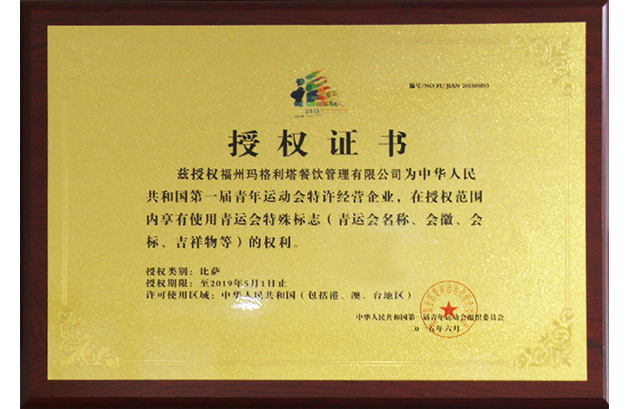 先后獲得了“第一青年運動會指定披薩”、“2015-2021中國快餐